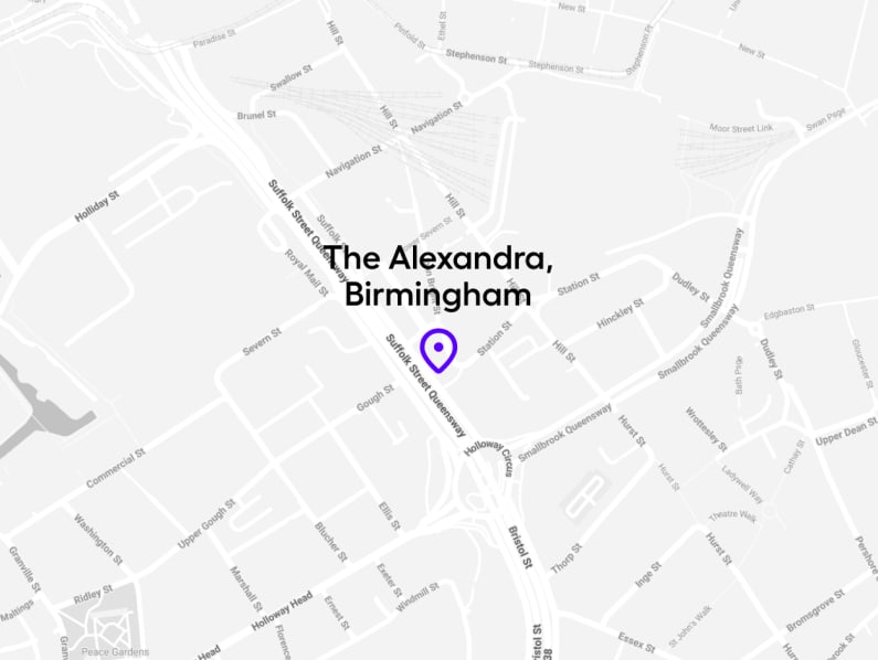 Birmingham New Street Station and Grand Central are only a few steps away from the The Alexandra. Intercity services run from all major towns and cities, including hourly services from London, into Birmingham New Street.